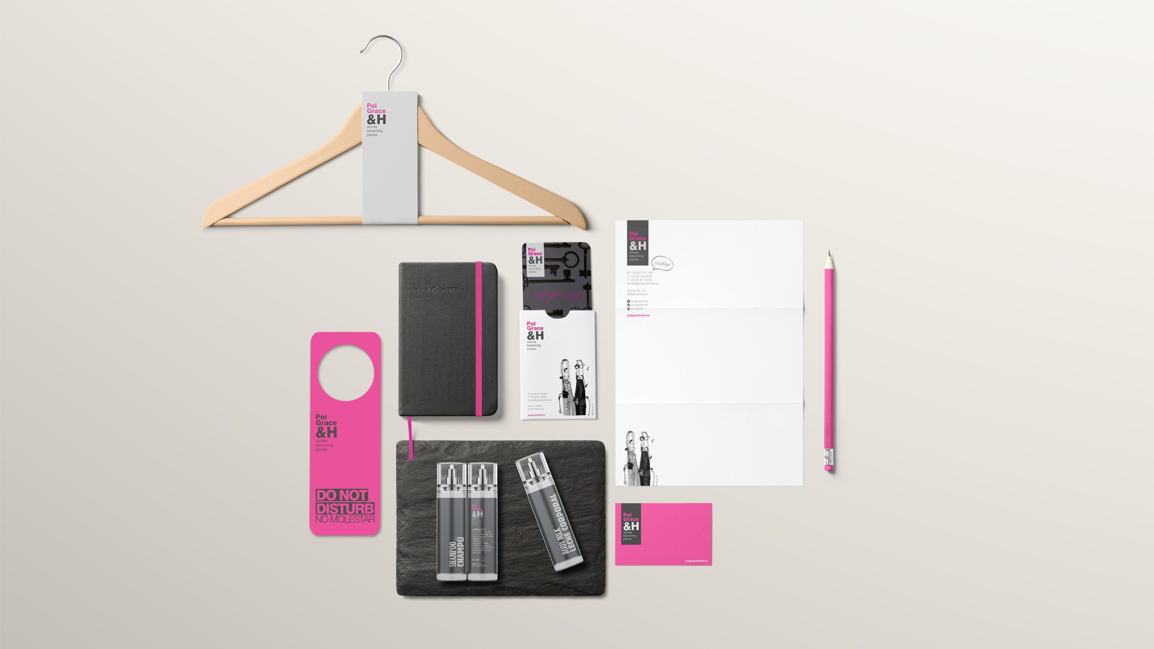 Las piezas giraron en torno a los dos personajes ficticios, Pol y Grace, que simbolizan la esencia del hotel. Ellos “viven” en el espacio y dan la bienvenida a los huéspedes como si fueran sus amigos, impregnando con sus personalidades cada detalle de la marca. Se rediseño el logotipo, se aplicaron tipografías diferenciadas para cada personaje, así como un universo visual limpio y minimalista, lleno de pequeños detalles originales que transmiten cercanía y sorpresa.