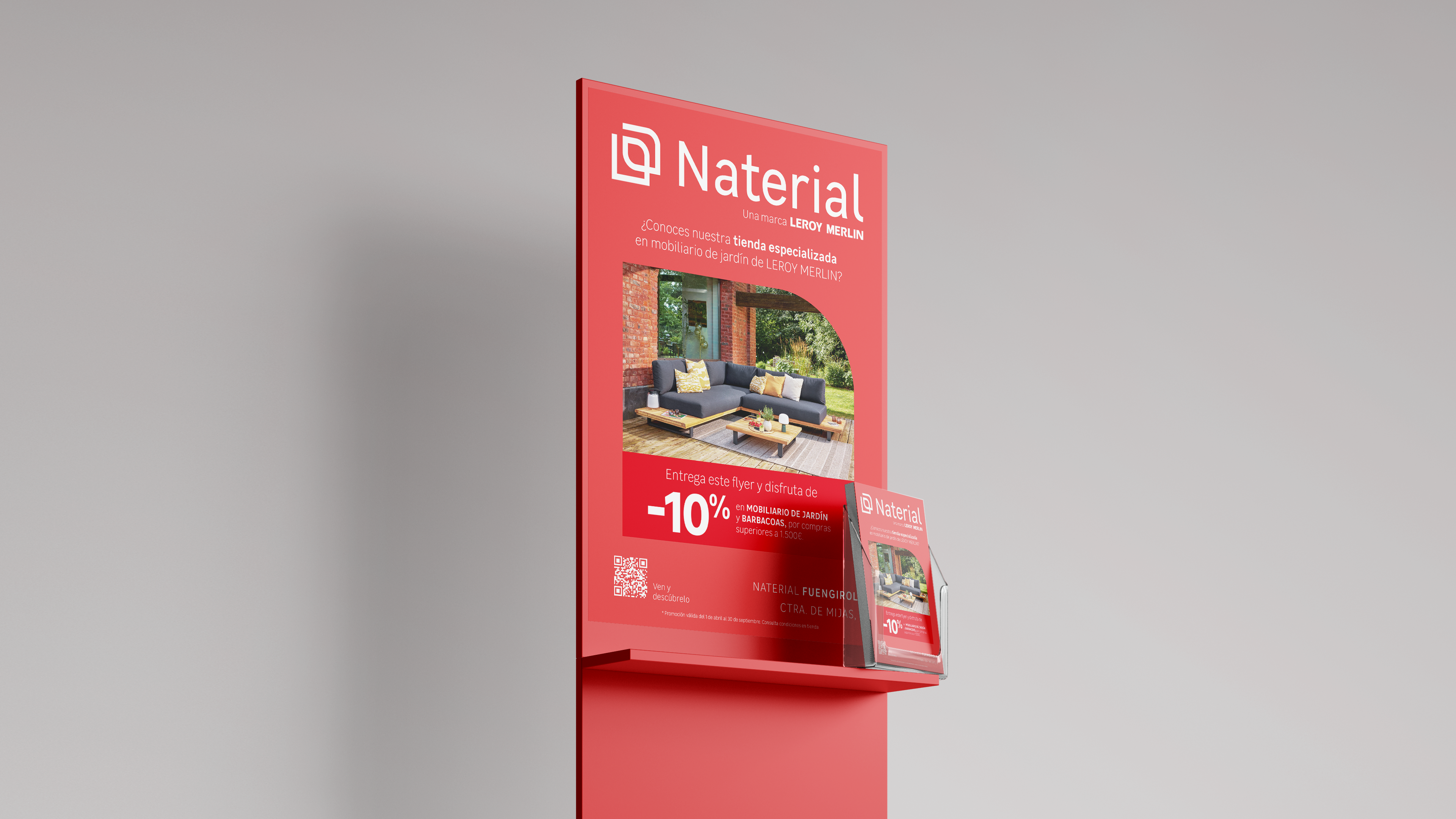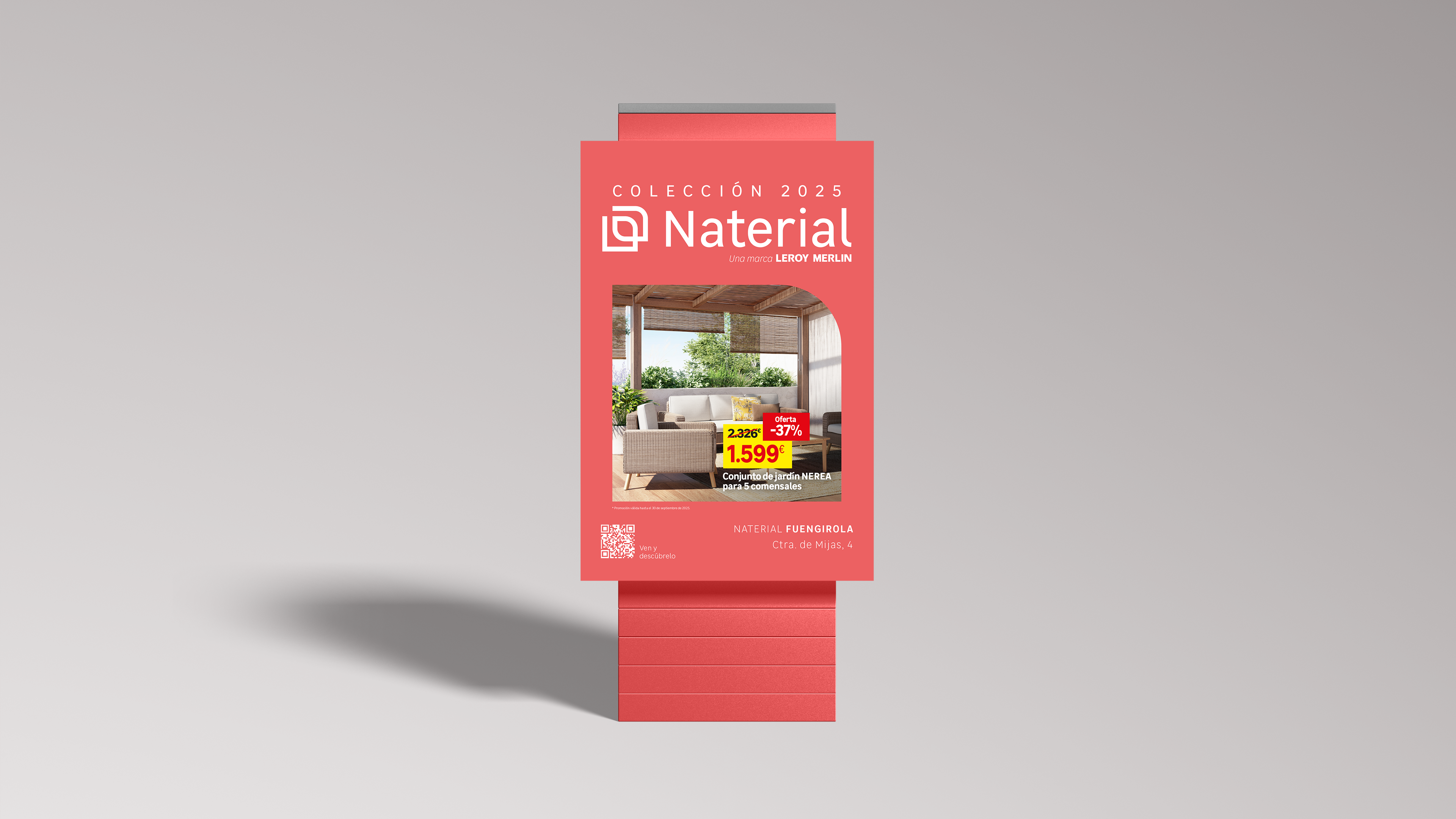 Las piezas abarcan publicidad exterior (como mupis, marquesinas y vallas), PLV interior (señalética y soportes promocionales dentro de las tiendas), además de flyers o volantes para clientes y una amplia comunicación en prensa en varios idiomas. Un despliegue integral que consolidó la identidad de Naterial en todos los canales, reforzando su posicionamiento como la marca que hace de cada espacio un lugar para disfrutar.