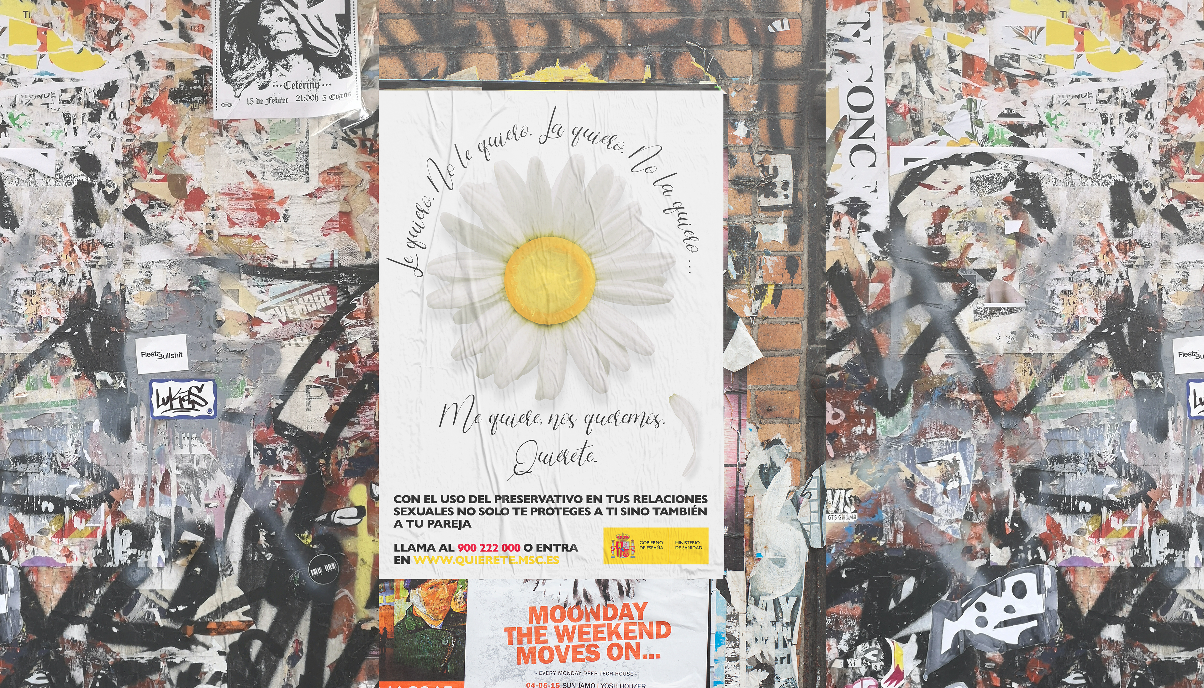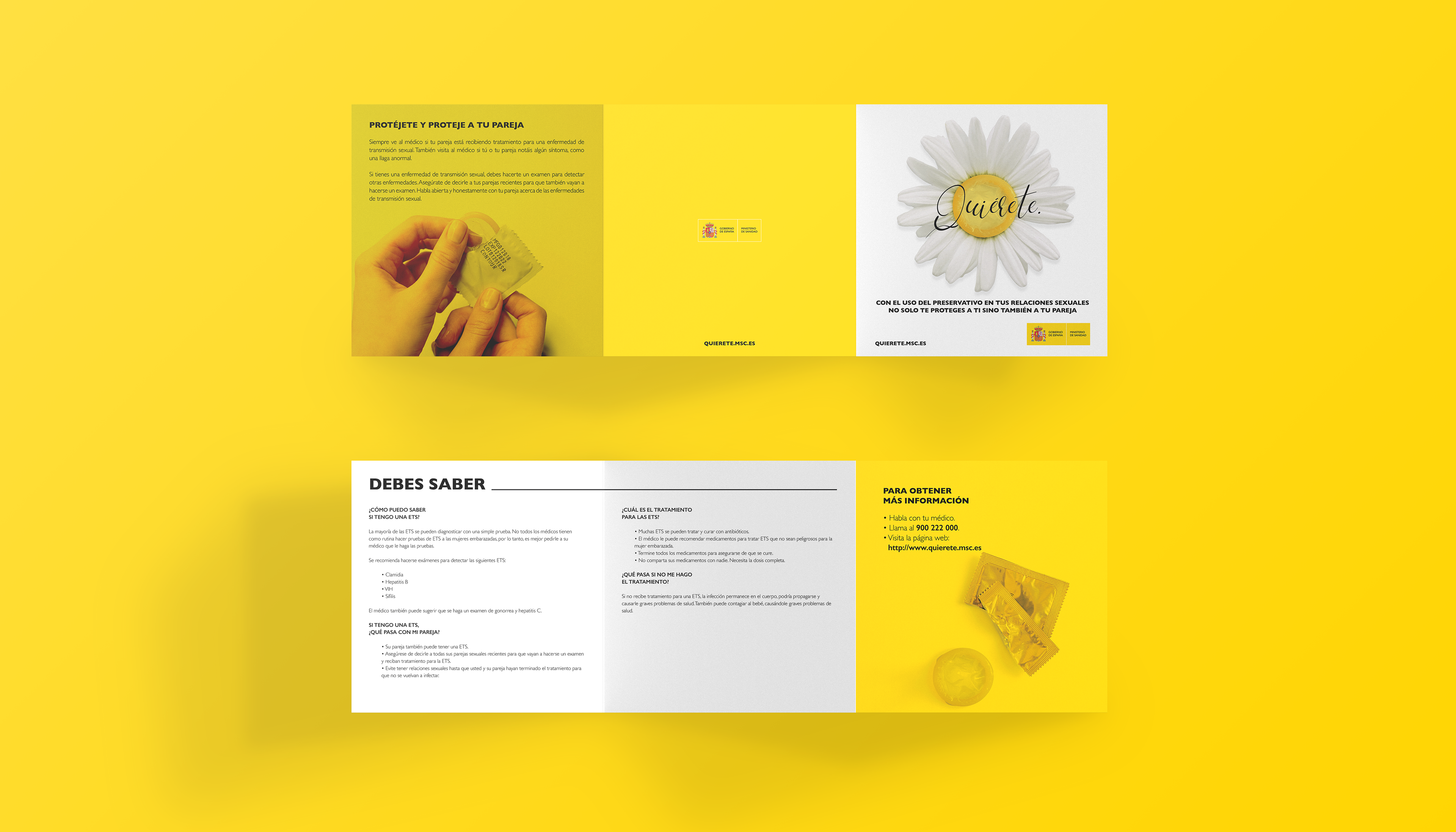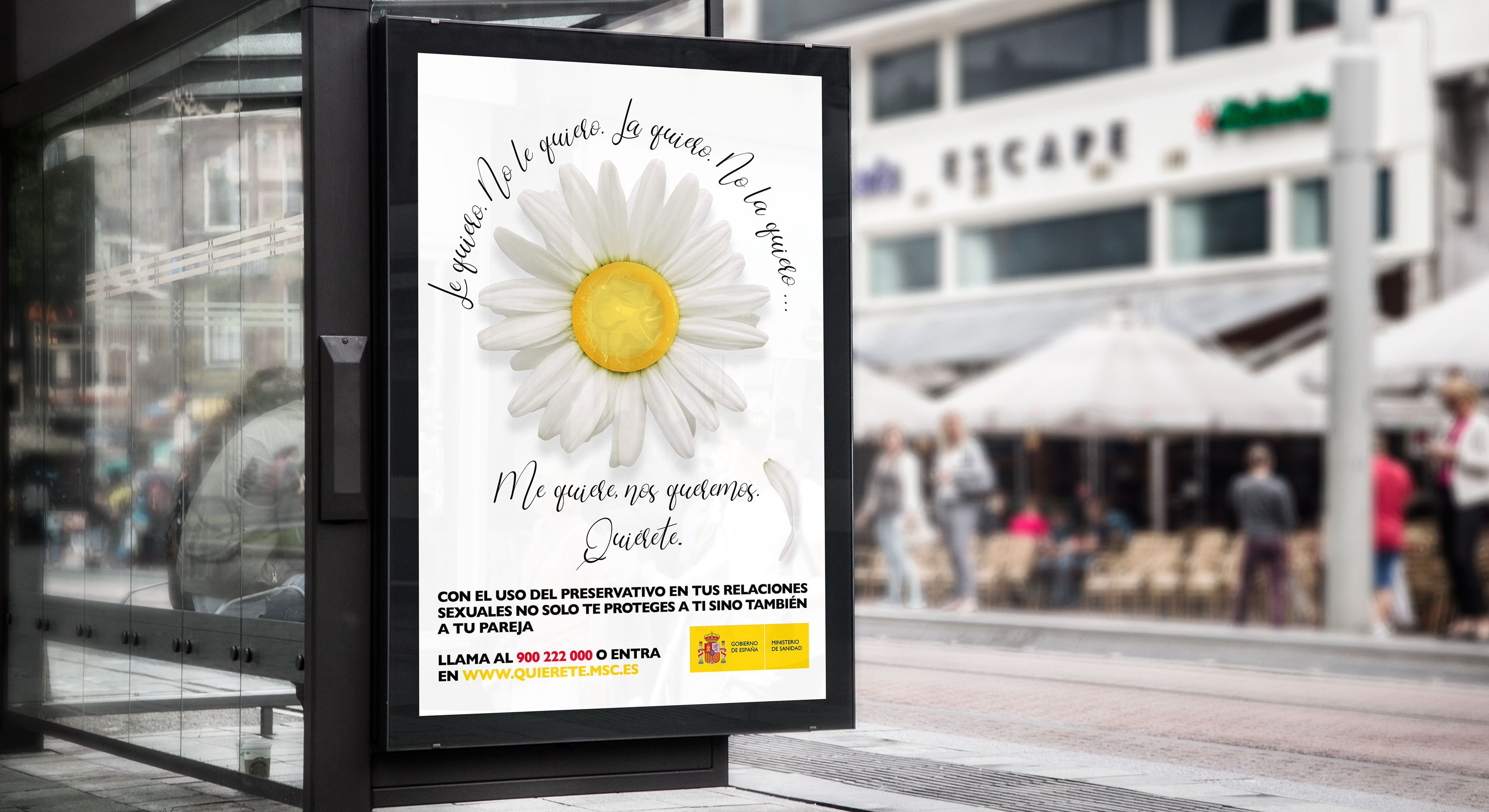 Bajo el concepto “Quiérete”, se utilizó el gesto de arrancar pétalos de una margarita como metáfora visual: cada acción representa cuidado, respeto y decisión consciente. La campaña transmitía de manera directa la importancia de aprender a quererse y respetarse, reduciendo riesgos de embarazos no deseados y enfermedades de transmisión sexual. El enfoque fue didáctico, accesible y emocional, con un mensaje claro que conecta con el público y genera reflexión sobre hábitos seguros y responsables.