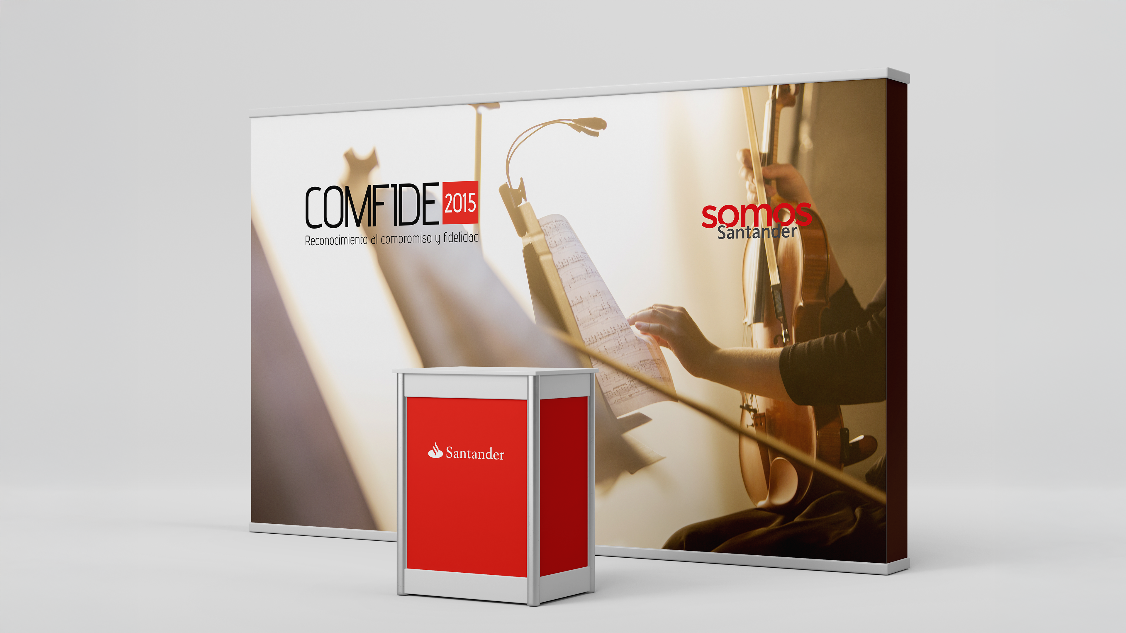 Banco Santander convocó la creación y producción de una ceremonia para reconocer la trayectoria y compromiso de sus trabajadores, celebrando los años de dedicación al banco a través de los Premios Comfide. La iniciativa distinguía a colaboradores que habían alcanzado hitos desde los 20 hasta los 45 años dentro de la institución.