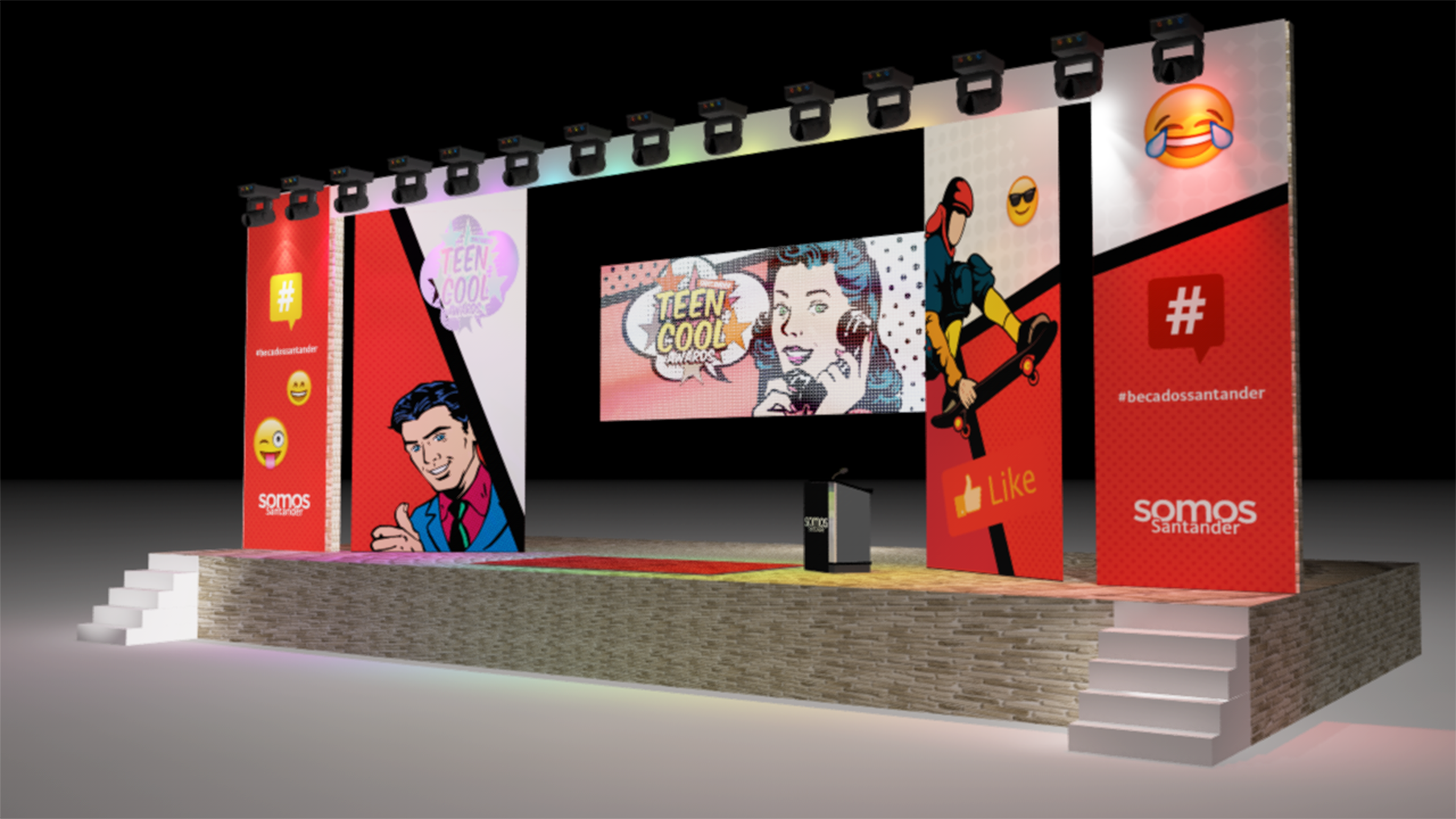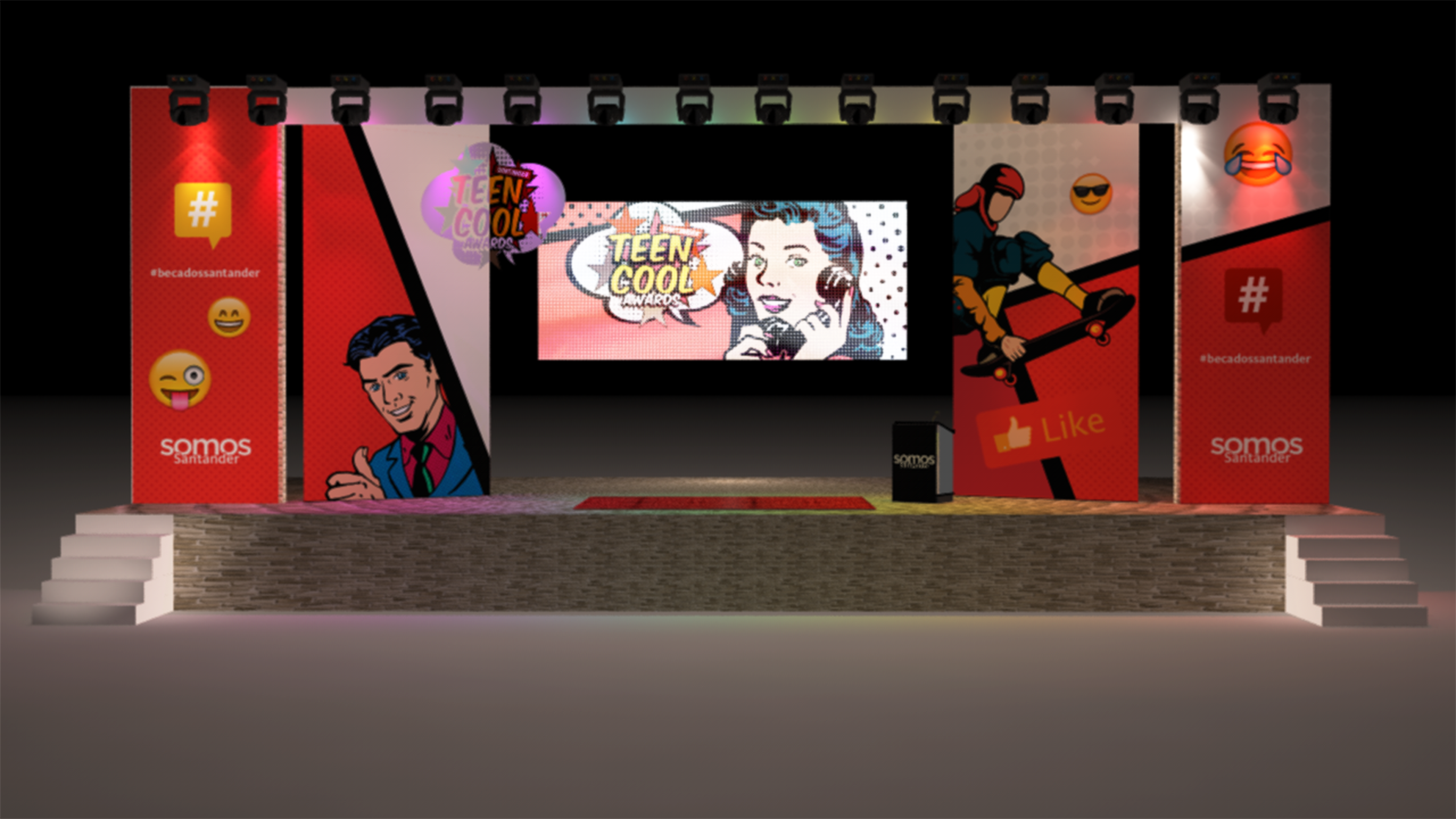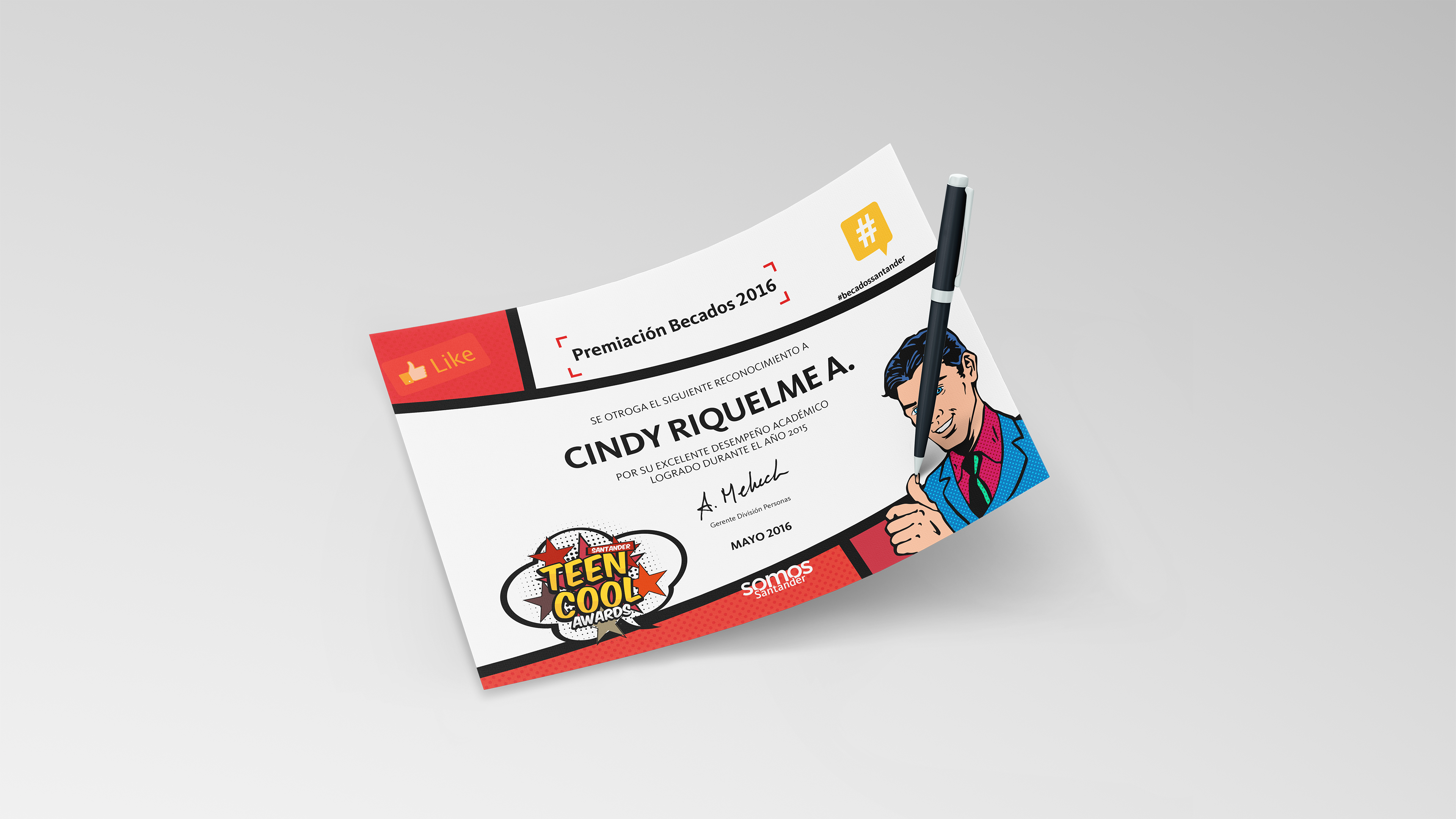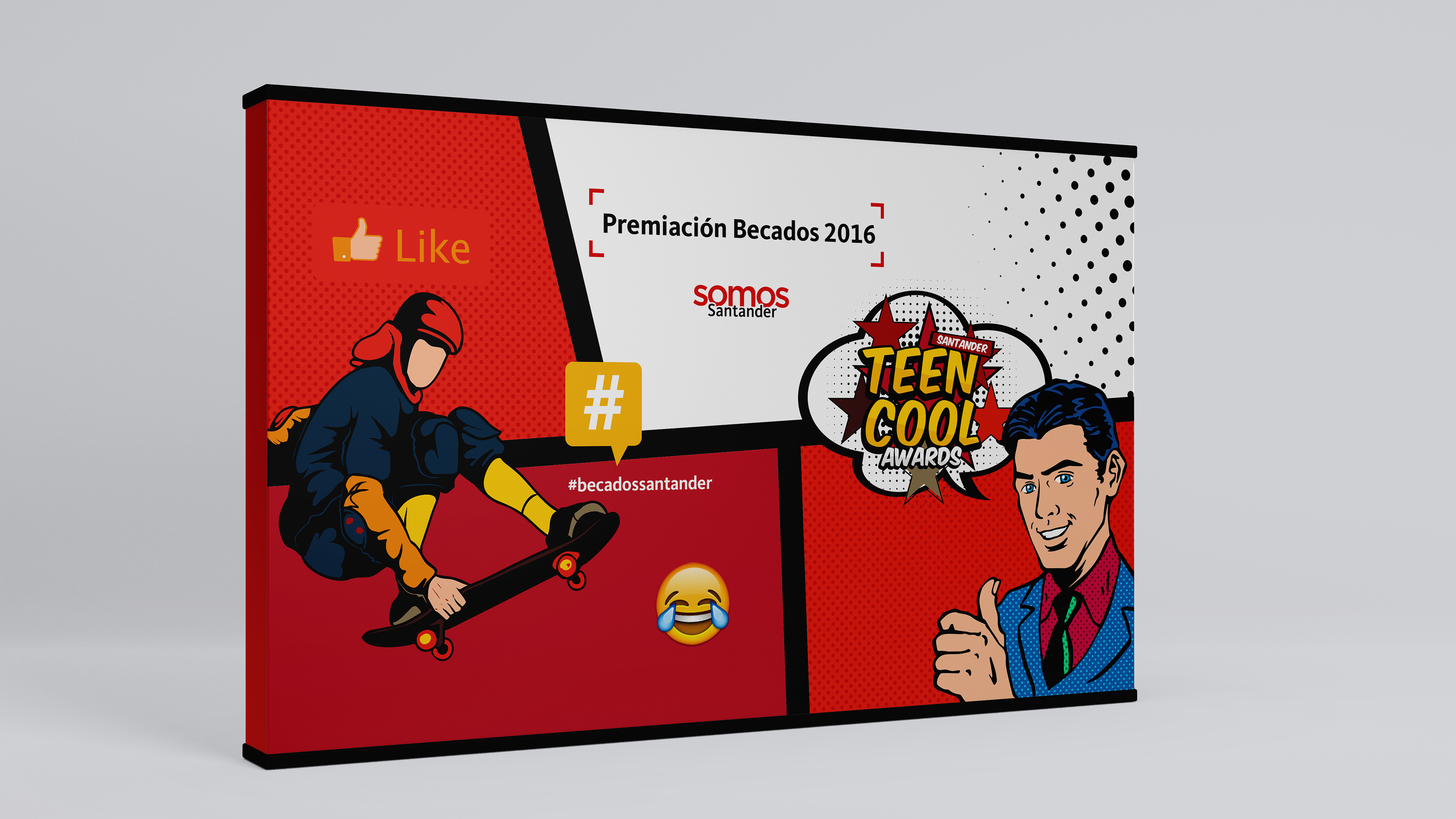 El evento se inspiró en el formato de las grandes ceremonias juveniles como los MTV Teen Choice Awards, trasladando ese espíritu dinámico y contemporáneo a la entrega de becas. Se desarrolló una identidad visual alineada con los colores corporativos del banco y una serie de piezas gráficas pensadas para acompañar todo el proceso: convocatoria, premiación y cóctel.